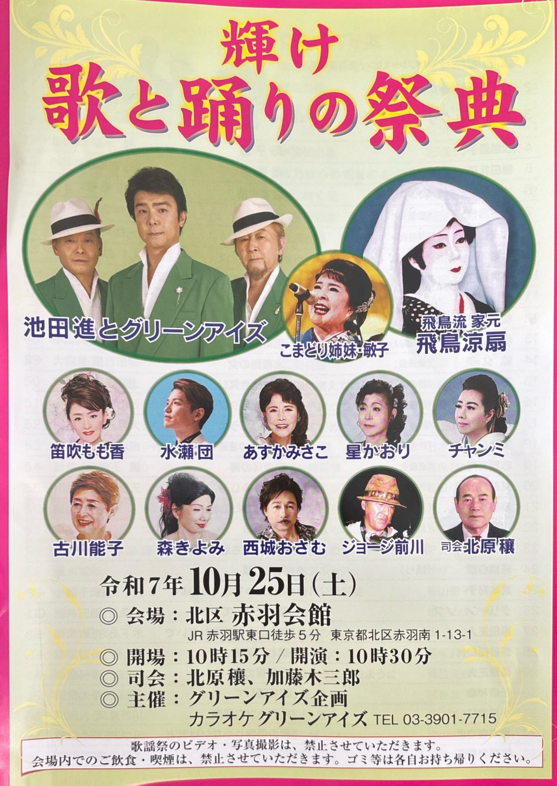 | 9月8日 | 会場:北区赤羽会館 歌と踊りの祭典 開場:10時15分 開演:10時30分 |